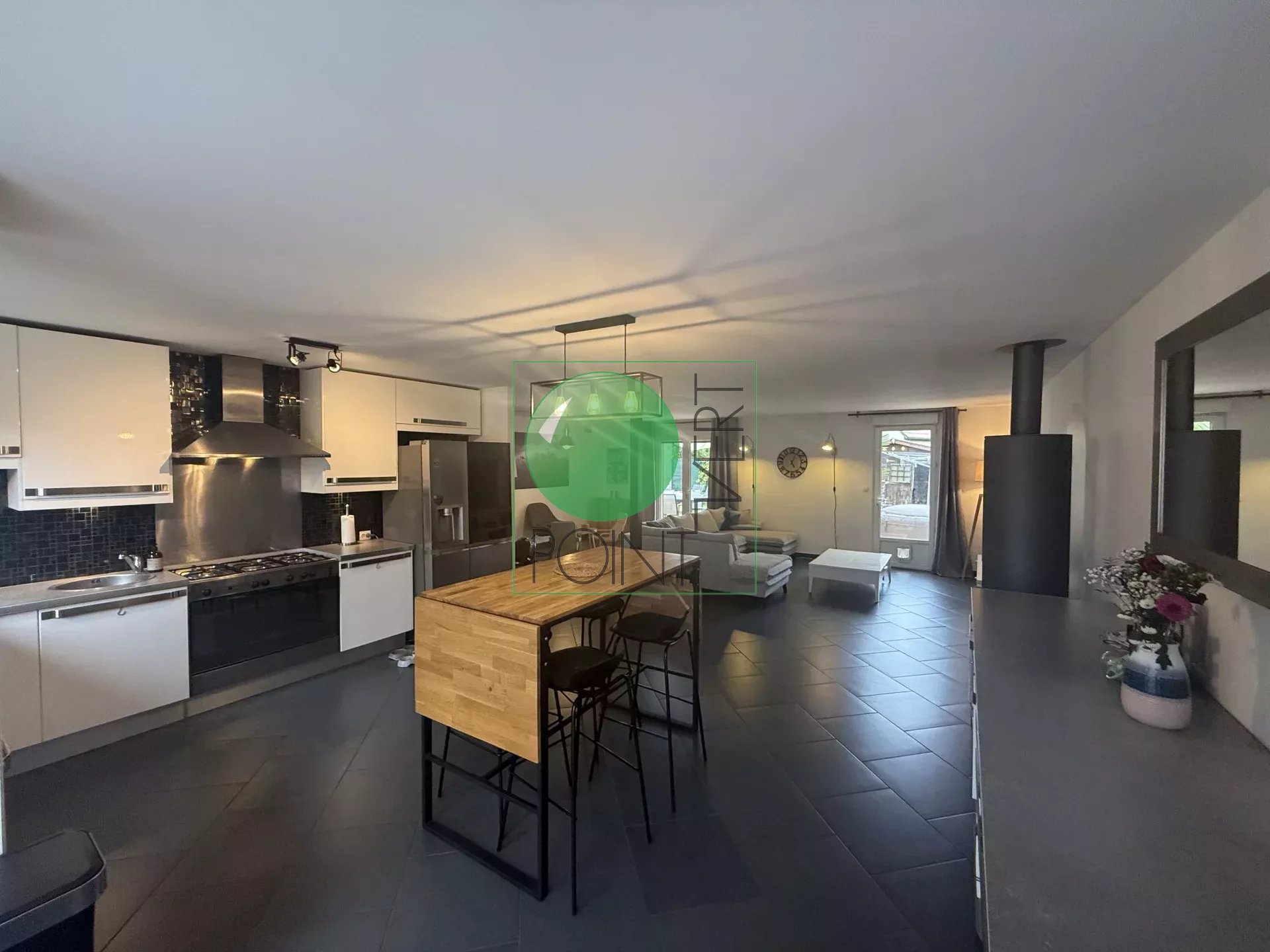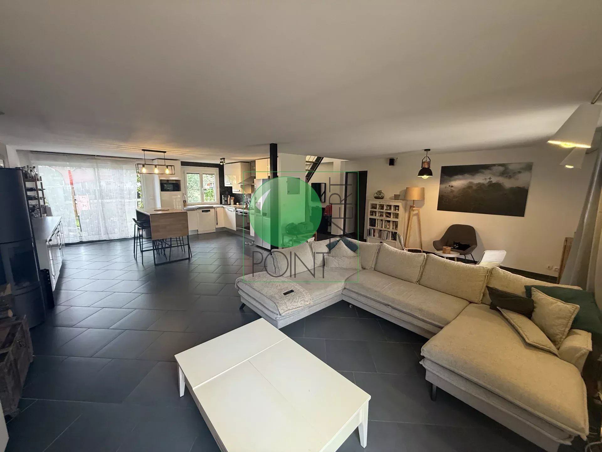 À LOUER en meublé, MAISON de type F7 comprenant : Au rez-de-chaussée : entrée, séjour salon avec poêle à bois, salle à manger avec cuisine ouverte aménagée et équipée, dégagement desservant 2 chambres, salle de bains avec douche, WC. À l'étage : une grande mezzanine, 3 chambres, une salle d'eau avec WC, et un cellier. De plus, un garage pour moto avec grenier et cave, chalet et terrasse. Le tout sur un terrain d'environ 648 m².Disponible au 15 novembre 2025.