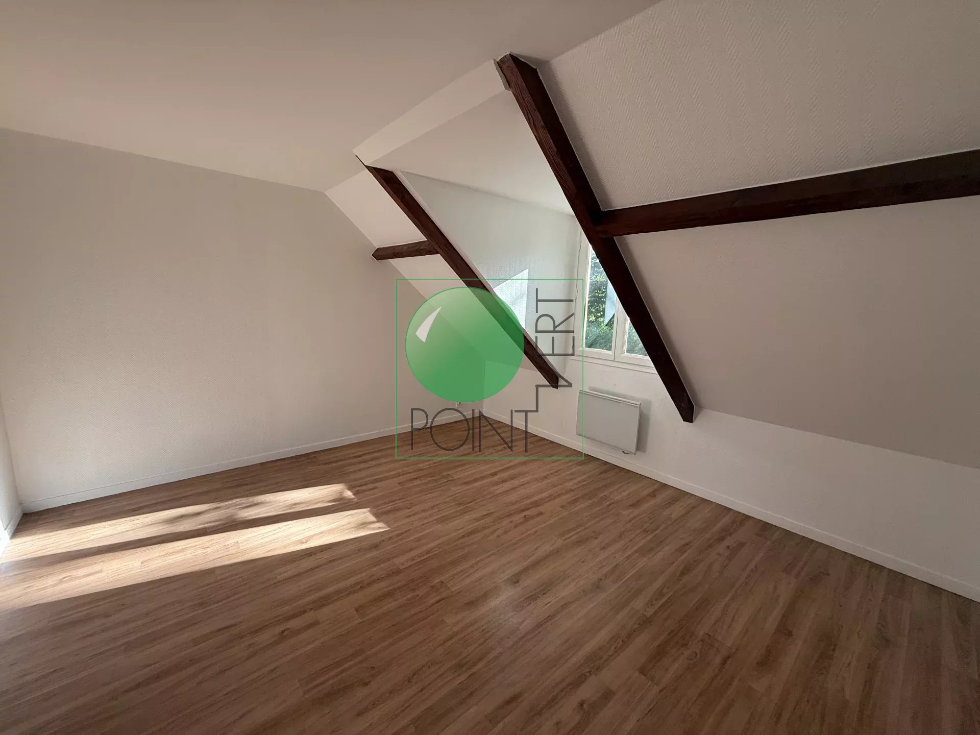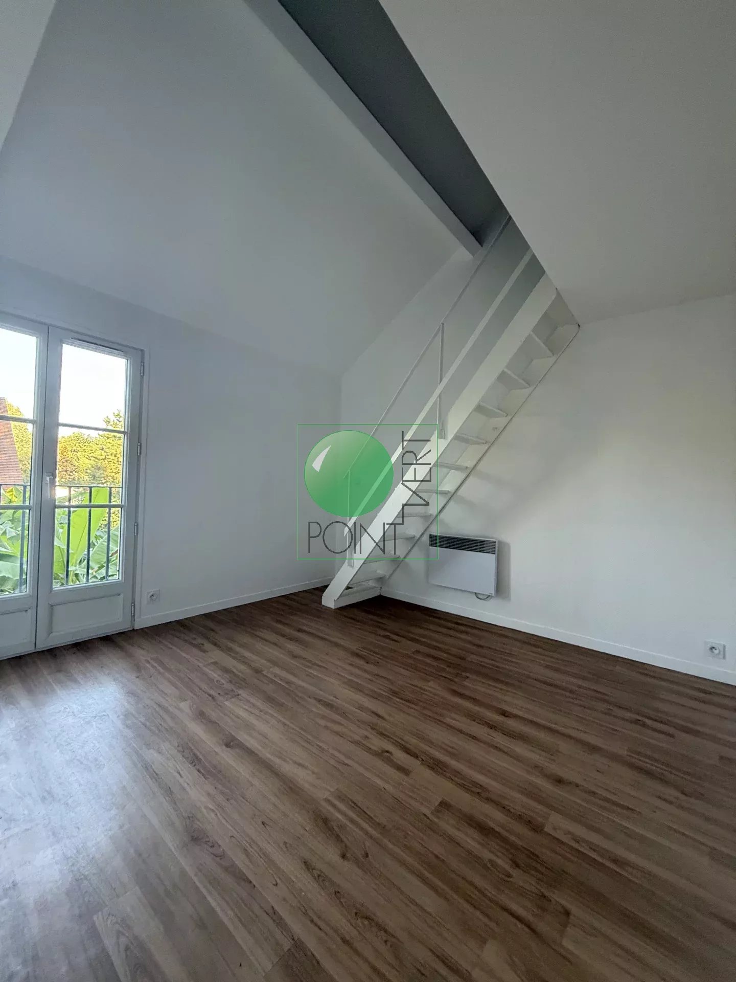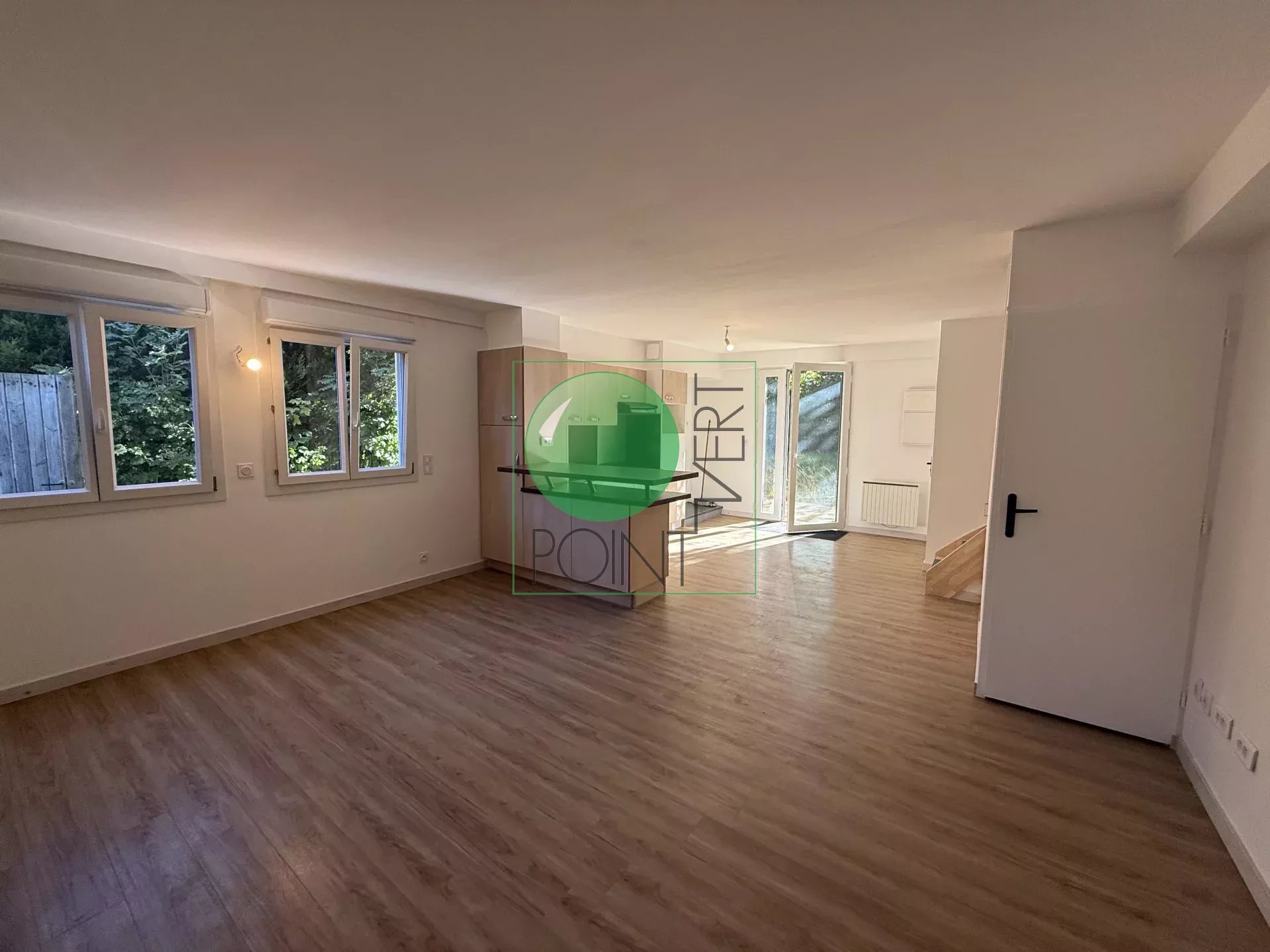 Dans un ensemble en copropriété, un appartement de type F3 en duplex avec un jardin de 100 m² comprenant : entrée donnant sur un salon avec cuisine ouverte aménagée, WC. À l'étage, dégagement desservant 2 chambres, dont une avec mezzanine, salle de bains avec WC. De plus, un terrain en jouissance exclusive et une place de parking privative.